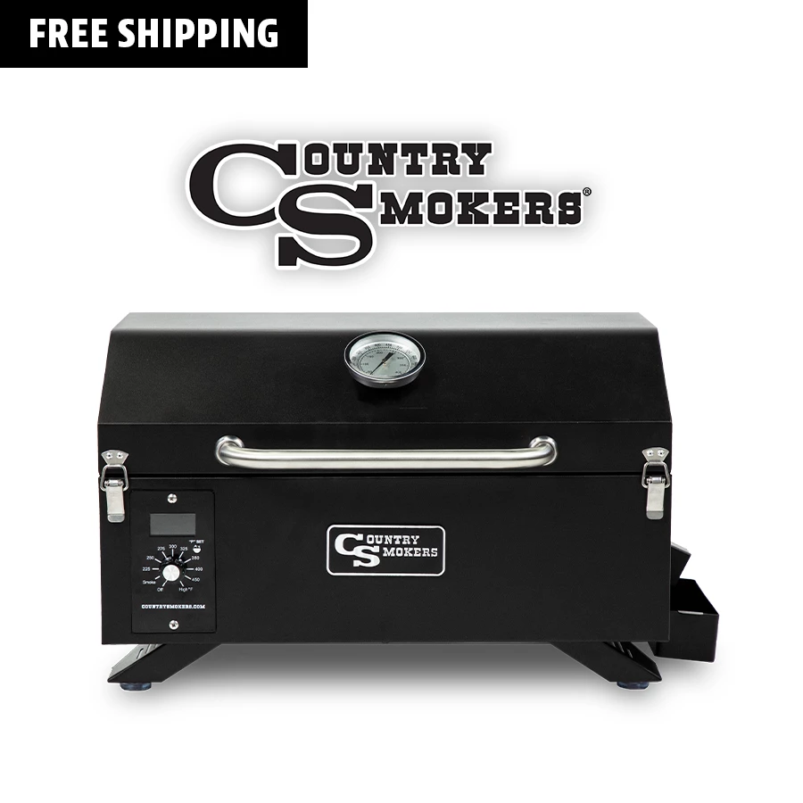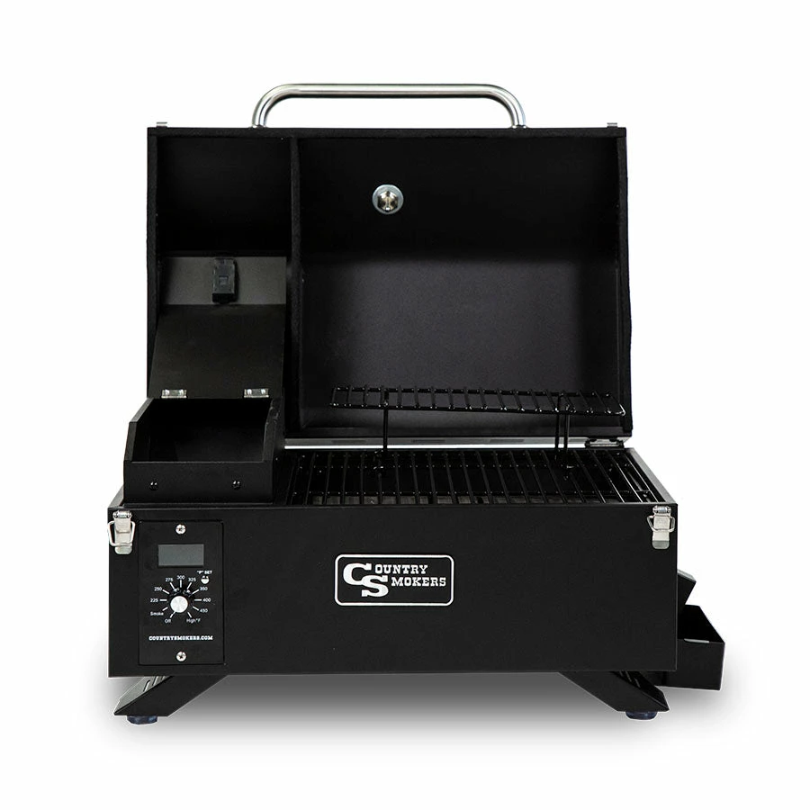 The Frontier Series Traveler Country Smokers® wood pellet grill is a sleek, compact pellet grilling machine. Named for its portability, with a clean, black sand finish, it provides savory, wood-fired flavor in a transportable package. The CS150PPG is soon to be your go-to grill for any and every outing. Grill, sear, smoke BBQ and so much more – whenever and wherever you want. It’s never been this easy to create smokehouse quality food while adventuring.