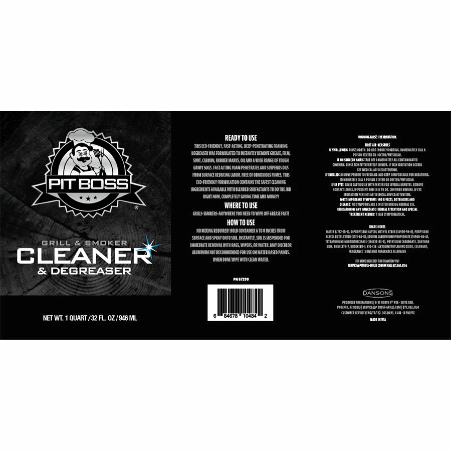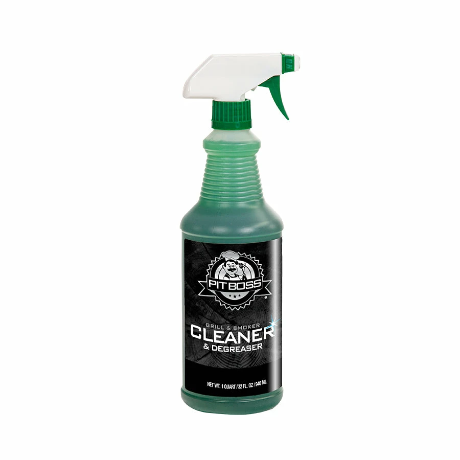 The Pit Boss Grill and Smoker Cleaner and Degreaser liquid is environmentally friendly, made with all natural extracts, non-toxic, non-corrosive, non-filming, safe for food prep surfaces, and is biodegradable. Â