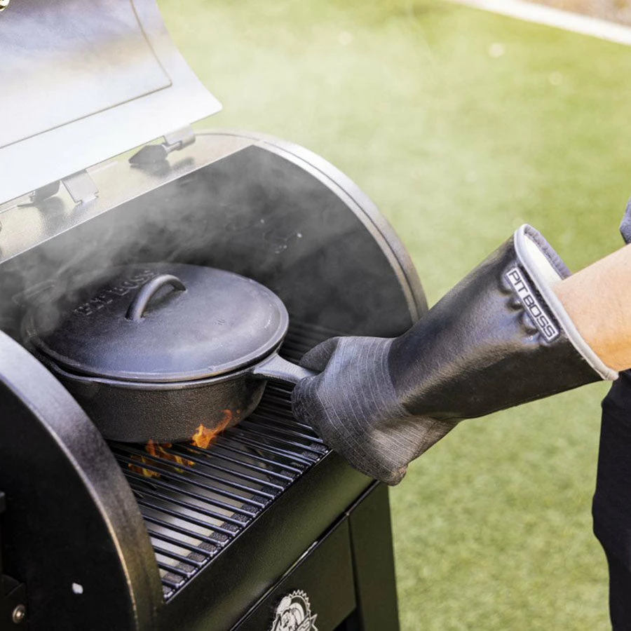 These comfort-fitted BBQ gloves are perfect for food prep, safely handling meat right off the grill, and protecting your hands from hot items inside your grill or smoker. The Pit Boss Nitrile gloves can even handle hot cast iron with ease, so you can focus on what matters most — perfecting your barbecue recipes.Â