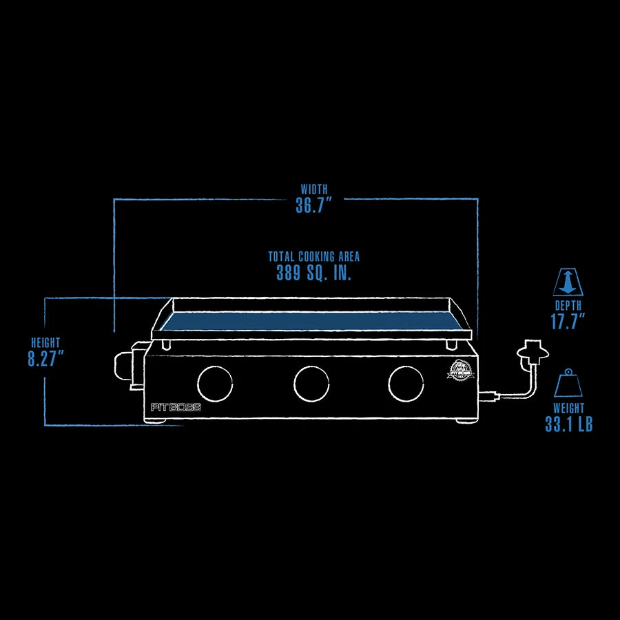 Meet the new lineup of Pit Boss® Portable Gas Griddles. Each Pit Boss 3-Burner Tabletop Griddle is outfitted with a durable cooktop and robust BTU value for an experience that’s Bigger, Hotter, Heavier® than the rest. Take delicious meals wherever you roam with this lightweight, portable griddle, featuring a 3mm thick surface. Enjoy 389 square inches of cooking space to prep everything from breakfast, lunch, or dinner.