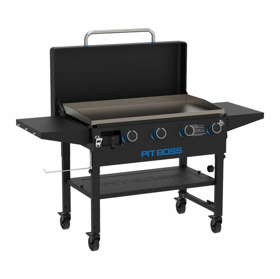 Meet the new lineup of Pit Boss® Standard Gas Griddles. Each Pit Boss 4-Burner Deluxe Gas Griddle is outfitted with a durable cooktop and robust BTU value for an experience that’s Bigger, Hotter, Heavier® than the rest. Enjoy the convenience and versatility of cooking with the Pit Boss 4-Burner Deluxe Griddle, complete with 753 square inches of cooking space, four separately controlled burners, folding side shelves, and lid.