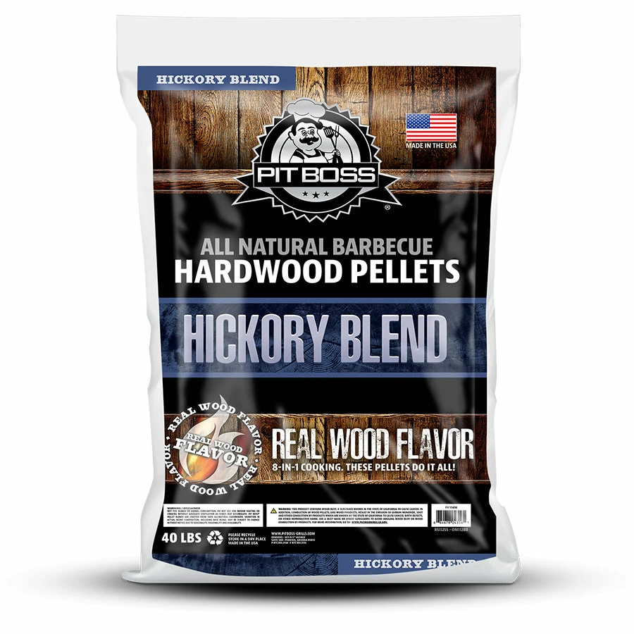 Bring big, bold flavor to your next barbecue with a hardwood pellet blend that’s favored by many seasoned pitmasters. Pit Boss® Hickory Blend Hardwood Pellets produce a strong aromatic smoke to perfectly complement beef, pork, poultry, and vegetables. Hickory is a popular choice for smoking because it packs a stronger flavor than most cooking woods, making it an ideal option for low and slow beef and pork. Savor 100% all-natural smoky flavor when you fuel up with our pellets, which are always free from added scents, sprays, chemicals, or glues.