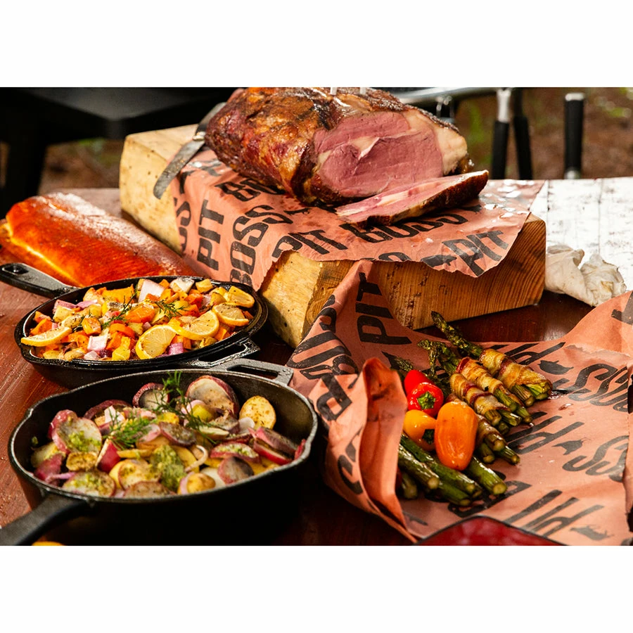 Master competition-quality brisket with Pit Boss Grills professional-grade peach butcher paper. This high-quality wrapping paper is excellent for sealing in juices and creating a crispy outer layer during cooking. Use to wrap and cook meats like brisket, whole chickens, vegetables, fish, and lamb. Unlike aluminum foil, it will allow your food to breathe and stay tender and flavorful during cooking. It can be used to smoke meats, line baking trays, wrap gifts, and more. Pit Boss Grills Butcher Paper will hold up against moisture buildup and high cooking temperatures.