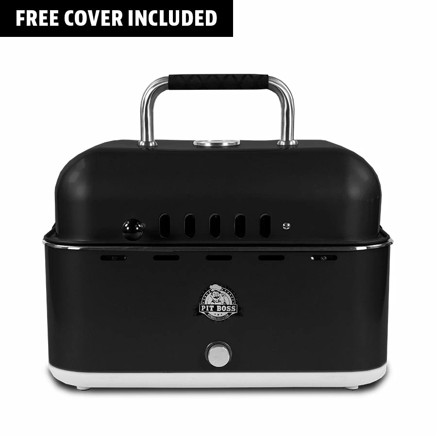 Grill on the go with the Pit Boss Portable Charcoal grill. It is easy to use, easy to carry, small in size but mighty in heat. Fueled by premium hardwood lump charcoal, battery operated, and it includes a cover bag.