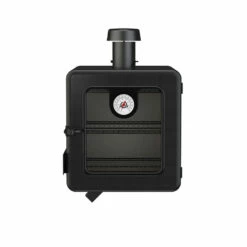 Additional features include a large view window to eliminate peek-a-boo cooking, an easy-open side latch handle, and a smokestack with an internal damper control for grill-to-smokebox airflow.