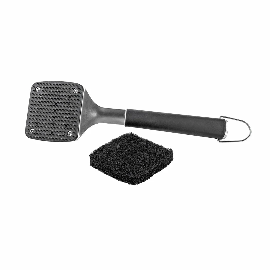 Includes: 1 soft touch griddle scraper, 1 soft touch griddle cleaning brush, and replacement scouring pads.