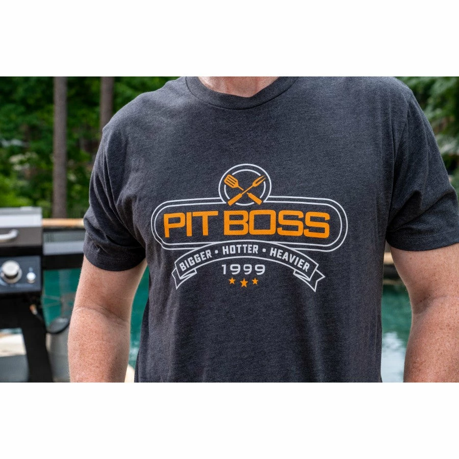 Bring the heat and make a statement as bold as your grill flavors. A perfect blend of comfort and style, the Pit Boss® Tools of the Trade T-Shirt features our woodmark logo underneath some grilling mainstays all above our company slogan, and boasts a casual, lightweight fit made from premium materials.